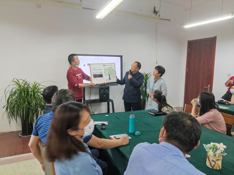 荣休仪式上,员工利用公司劳动教育实践基地“耕读园”蔬菜,和面擀面,制作成充满祝福与敬意的长寿面。来自祖国各地的同学拍摄家乡视频,盛情邀约,表达着对解老师荣休的祝贺。汇集了校领导、全院教师及员工代表签字的“成长树”留念板,附上解伟民前辈(解老师父亲)的诗句“天南地北任驰骋,一心播种人间爱”,文以载道,薪火相传,生生不息。