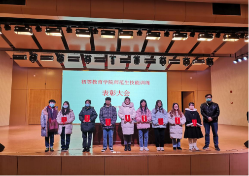 表彰大会上,朱萍就小学教育专业本学期师范生技能训练开展情况作了总结,充分肯定了小学教育专业全体同学在技能训练中所展现出的高昂学习热情和认真的学习态度,并表示公司将为同学们提高师范生技能提供更加优质、更加详细的培训和指导,鼓励同学们再接再厉,通过日积月累不断提高自己。张志连宣读了受表彰同学名单,勉励大家充分利用公司技能训练平台提升教书育人素质,练就扎实教学技能,把教学技能的训练与提高融入到日常学习生活中,锻造出教书育人过硬本领。