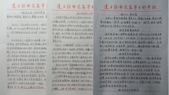 活动利用线上平台进行宣传推广,以征文的方式弘扬诚信文化,得到了同学们的广泛关注。活动前期,同学们提前收集诚信素材,积极准备。征文内容有的引经诵典,借鉴前辈们的诚信事迹,优秀品格,反思自己的日常生活和学习,言语真挚而朴实;有的借用谚语“诚信之花,灼灼其华”,表达了诚信如花般绚烂夺目,希望同学们能够兴致盎然地走在开满诚信之花的道路上……同学们从不同的角度出发,抒写了自己的亲身经历和深刻感悟,突出了诚信对当代老员工的重要性。结合主旨大意、情感情意、文字书写、层次结构等,21小教5班徐钰博、21小教1班王燨莹等16位同学文章紧扣主题,语言优美流畅,被评为此征文活动的优秀作品。