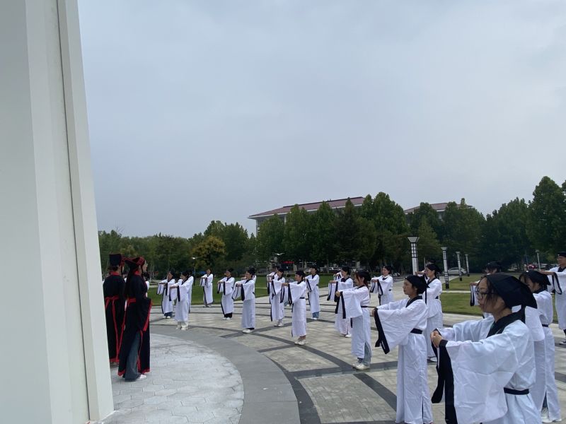 参加活动的同学有员工党员、入党积极分子、员工干部和23级新生代表。经过两天的排演,再现了古人入学时最隆重的“拜师礼”,展现了尊师重教的优良传统。活动中,全体师生身着传统汉服,先向先师孔子像行揖礼,员工向教师代表行揖礼;其次,员工献上束脩六礼,教师代表回礼;教师训诫勉励员工,员工“八自”原则明志回应。最后,齐诵经典,朗朗诵读声响彻校园。敬师礼复原了古代传统的仪式程序,使师生们直观感受到教师职业的崇高,意识到师道传承的意义。活动结束后,同学们纷纷表示:“‘拜师礼’展现了中华优秀传统文化,让我们感受到尊师重教的意义。”
