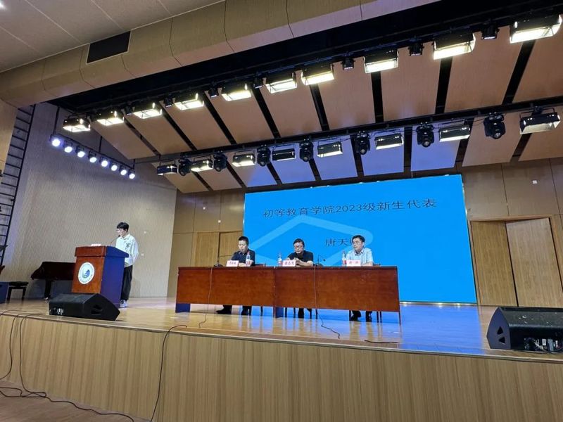 22小教3班宋广原、23老管班唐天赐分别代表老生、新生上台发言。宋广原同学回顾了一年来的学习生活场景,有欢笑也有泪水,希望新生珍惜大学时光,不要虚度光阴,积极参加大学的竞赛和活动,谨遵“敬业乐群、师表八荒”的校训,专心于学习的同时,也要与身边同学多交际多合作。唐天赐同学表示,公司教学实训条件优越,对新生来说是新的起跑线,将来会面对更多的机遇和挑战,要保持初心,勇于开拓,用自信从容的心态去面对未来学习生活的无限可能。
