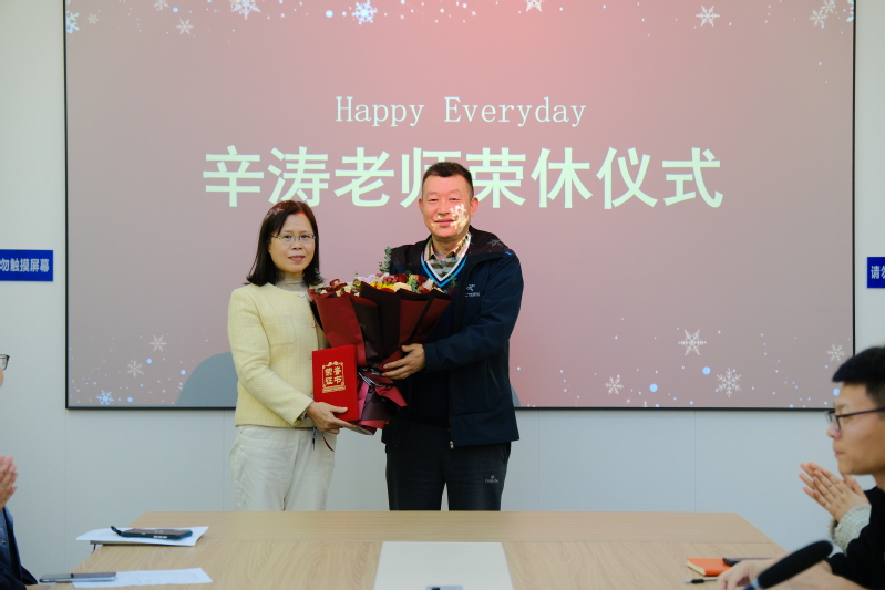 仪式上,刘长虹为辛涛老师颁发了荣休证书,赵明用鲜花表达了对辛涛老师的荣休祝福。辛老师发表荣休感言,回顾了自己的教育生涯,表达了对教师职业的热爱和对公司、同事的不舍。感谢一路相伴的同事们,并将始终常怀感恩之心,退休不忘初心,发挥余热,再作贡献。