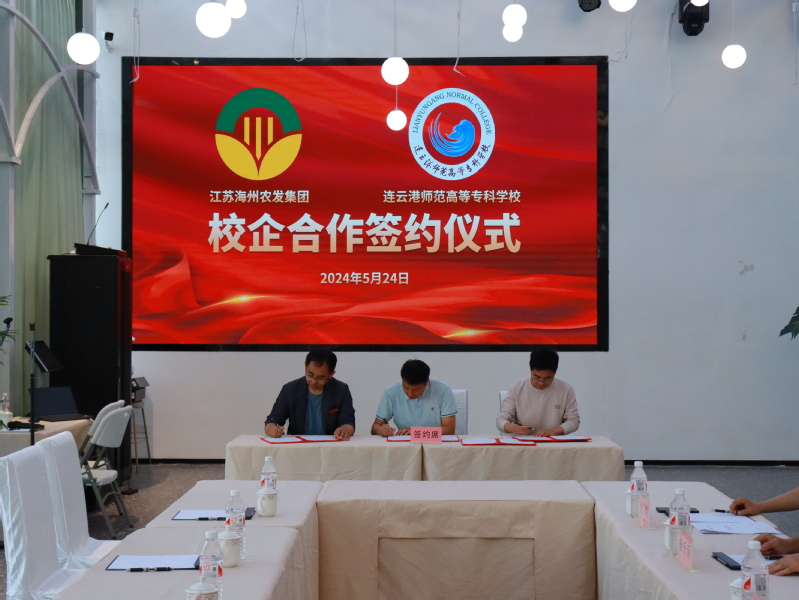 活动中,李强、赵江分别代表公司与江苏海州农发集团签订了合作共建实习实训基地协议书,校企双方在教学实践、实习实训、就业对接等方面达成进一步合作意向。