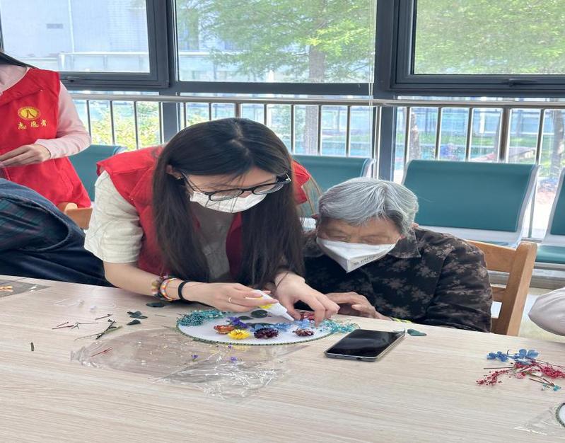 清风徐来团团扇 。志愿者积极查阅资料,购买制作素材,为老人讲解团扇的分类、扇面构图的形式以及团扇的制作工艺,并与老人们一起用干花和颜料来装饰、绘制团扇。在活动中,志愿者和老人们一起边话家常边做团扇,为老人们的生活带来了艺术的陶冶和文化的情趣,也为老人夏日炎热的生活带来一丝清凉。