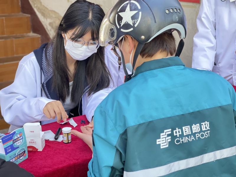 活动当日,志愿者们分工明确,分为检测组与咨询组有序开展服务。检测组凭借专业仪器,为老人逐一精准测量血压、血糖,并针对异常结果,及时给予注意事项提醒;咨询组则充分运用营养学专业知识,用通俗易懂的语言,为老人耐心解答高血压、高血糖日常注意事项、营养搭配等问题,分享 “低盐低糖”“定时监测”等实用建议。尽管天气渐趋炎热,志愿者们始终耐心倾听、细致服务。不少老人主动分享自身健康状况,志愿者们则细心叮嘱注意要点,其扎实的专业素养与真诚的服务态度,赢得社区老人的一致好评。