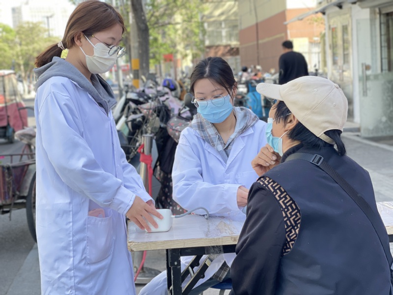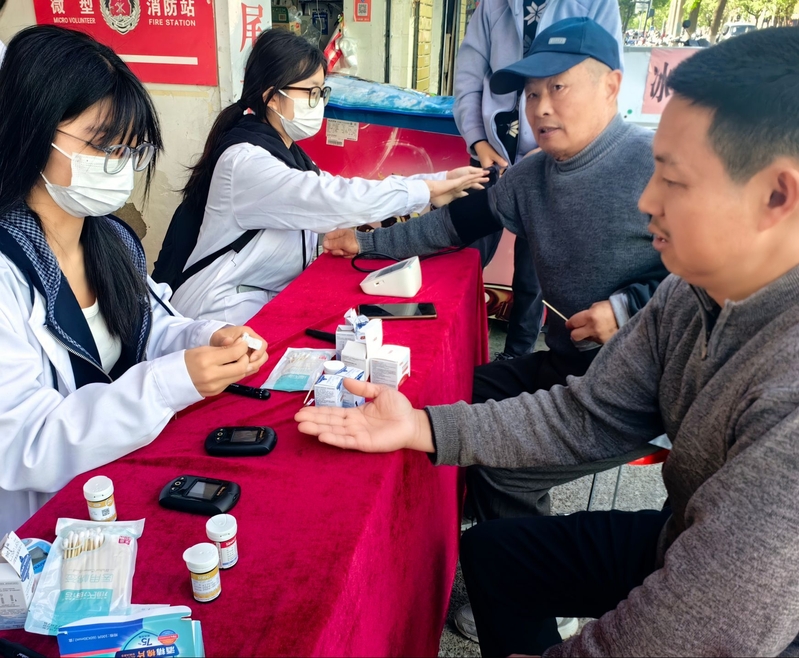 活动当日,志愿者们分工明确,分为检测组与咨询组有序开展服务。检测组凭借专业仪器,为老人逐一精准测量血压、血糖,并针对异常结果,及时给予注意事项提醒;咨询组则充分运用营养学专业知识,用通俗易懂的语言,为老人耐心解答高血压、高血糖日常注意事项、营养搭配等问题,分享 “低盐低糖”“定时监测”等实用建议。尽管天气渐趋炎热,志愿者们始终耐心倾听、细致服务。不少老人主动分享自身健康状况,志愿者们则细心叮嘱注意要点,其扎实的专业素养与真诚的服务态度,赢得社区老人的一致好评。
