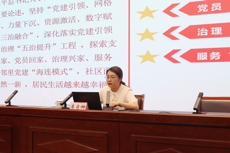 6月23日,初等教育公司党总支在玖兴楼B108报告厅开展了“迎七一”专题讲座。本次讲座特邀全国人大代表,连云港市海州区新海街道海连社区党委书记、居委会主任,公司优秀毕业生李肖娜,以“初心如磐映党徽 作风为桥连民心—基层作风建设的实践与思考”为题,分享党建引领社区治理中作风建设的生动实践与深刻思考。讲座前,公司党委书记杨浩与李肖娜亲切会见并进行了深入交流。讲座由公司党委副书记刘长虹主持,公司220余名师生代表现场聆听。