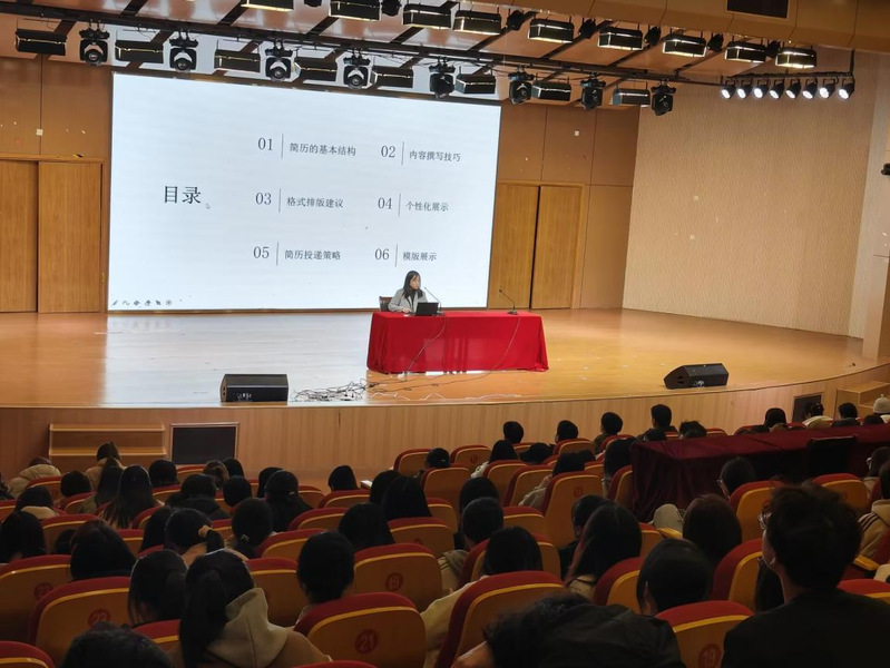 随后,毕业班辅导员聚焦简历制作开展实操指导。她结合企业招聘需求,系统拆解简历核心要素讲解制作技巧,提出简历制作要突出专业技能与实践经历,用数据量化成果。她强调,简历是求职的“敲门砖”,其核心在于“精准匹配”与“亮点突出”。同时提醒毕业生,重视简历的规范性,务必规避格式混乱、表述空泛等常见问题,需真实反映自身实际能力和经历,为后续的面试环节奠定坚实的诚信基础。