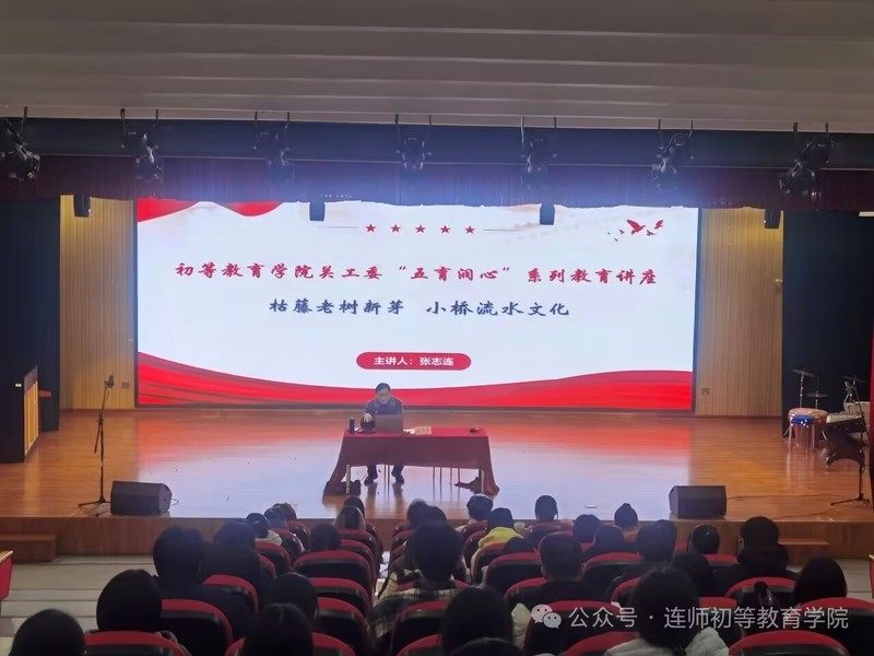 11月20日下午,l9193永利关工委在智贤楼小剧场举办“五育润心”系列讲座,公司关工委副主任张志连以《枯藤老树新芽·小桥流水文化——校园文化之管窥》为题,为200余名师生代表作专题报告,将百年校史与时代精神熔铸于校园肌理。