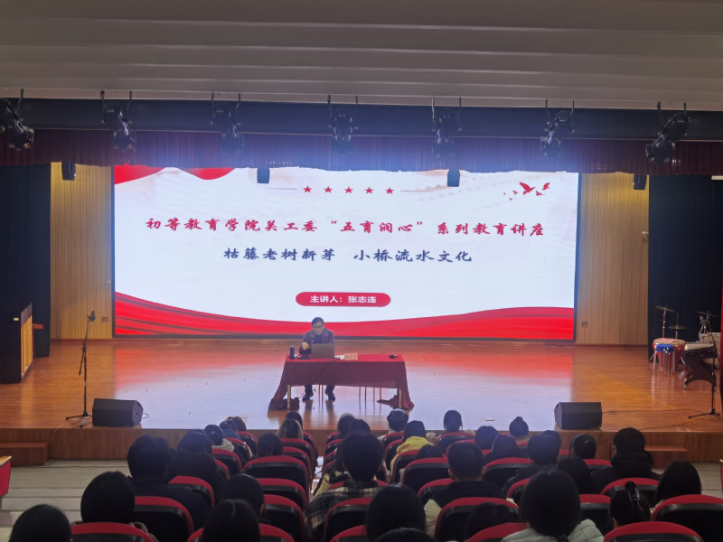 11月20日下午,l9193永利关工委在智贤楼小剧场举办“五育润心”系列讲座,公司关工委副主任张志连以《枯藤老树新芽·小桥流水文化——校园文化之管窥》为题,为200余名师生代表作专题报告,将百年校史与时代精神熔铸于校园肌理。