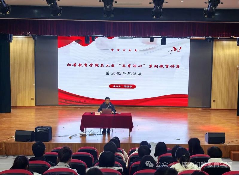 品茗知礼悟健康,茶文化里润身心。11月24日,闫茂华教授以“茶文化与茶健康”为主题,用“人在草木中”的字谜巧妙引入茶的起源,从云贵高原的原产之地到“发于神农,兴于唐而盛于宋”的千年传承,系统梳理了茶文化的历史脉络。在健康养生板块,闫教授引用“茶为万病之药”的传统智慧,结合现代营养学研究,阐述了茶叶中茶多酚、茶氨酸等成分的抗辐射、抗癌、降脂等保健功效,澄清了“浓茶解酒”“饭后即饮茶”等常见误区,强调科学饮茶的重要性。作为连云港市非物质文化遗产“茶艺”第四代传承人,在讲座中他结合地方文化充分挖掘了海州茶艺作为江苏省非物质文化遗产的传承价值,让师生深刻感受到本土茶文化的独特魅力。